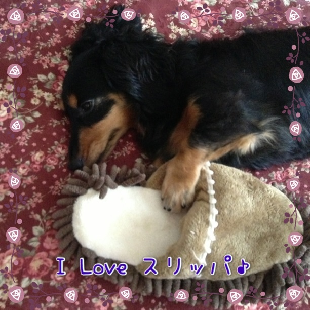 撮影した時、私の頭の上にはさくらちゃんがオモチャにしているスリッパが