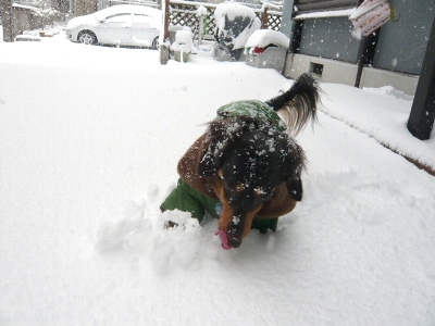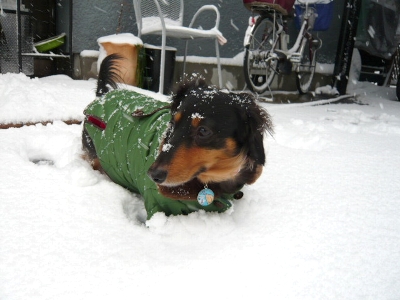 フリースの洋服の上に、厚手のコートを着せて…ドラム缶状態になったマロン王子。